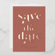 Modern Stylish Typography Wedding Save the Date in modern neutral retro boho shade of mauve terracotta rust with REAL rose gold foil (you can also choose from gold foil or silver foil to suit your aesthetic!). Perfect for letting your future guests know of your happy event or engagement! Please contact us at cedarandstring@gmail.com if you need assistance with the design or matching products.