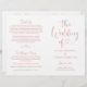 Modern wedding ceremony sheet programs feature a stylish rose gold typography design with chic calligraphy script and a heart accent. The simple and elegant custom text that can be personalised for your bridal party, ceremony information, and thank you message. Note: these text weight paper programs arrive flat and require folding to assemble.