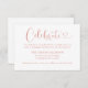 Modern rose gold and white (colours can be modified) wedding reception enclosure card features a stylish typography design with chic calligraphy script and a heart accent. The simple and elegant custom text that can be personalised to invite guests to "Celebrate" the wedding, including the reception location name, address, and arrival time.