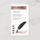 This modern and elegant business card design is perfect for any loan signing agent looking to project an image of professionalism and trustworthiness. Featuring a sleek white and rose gold colour scheme, a professional photo, and a stylish feather pen logo, this card is sure to leave a lasting impression on clients.