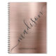Modern, girly rose gold monogram script signature custom personalised spiral notebook. This feminine design featuring a faux rose gold brushed metallic background, a huge hand-writing signature name or monogram text template. The name is written in a huge beautiful swirly hand lettered swash tail font style. Great feminine gift for girls and woman for school, home office, business, birthday, wedding, bridal shower, sweet 16 birthday party, or anyone who loves pretty girly modern style.