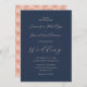 Modern Rose Gold Navy Blue Elegant Script Wedding Invitation