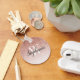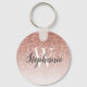 This chic keyring features a rose gold ombre faux glitter background. Customise it with your initial in white serif font and your name in dark grey handwriting-style brush script.