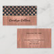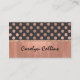 Stylish business card, with graphics of rose gold and black polka dot pattern, on the front top, with a band of rose gold foil look across the bottom and covering the back of the card. Personalise the text to suit your business needs. A lovely stand out card great for any kind of occupation or business.
