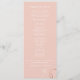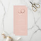 Clean and modern text is easily personalised on this chic, skinny format, wedding program. White feels sophisticated and romantic against soft blush pink when accented with a faux rose gold foil graphic of interlocked wedding rings.