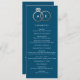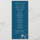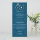 Clean and modern text is easily personalised on this chic, skinny format, wedding program. White type feels sophisticated and feminine when accented with a faux rose gold foil graphic of interlocked wedding rings on a background of navy blue.