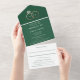 Modern Rose Gold Rings Green Wedding All In One Invitation