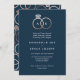 A modern monogram gets glam with intertwined rose gold wedding rings and a personalised text making this a new classic wedding invitation with streamlined text in white on rich navy blue. Personalise all of the text of this invitation for a custom, simple classic invitation that will stand the test of time.
