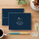 A modern monogram gets glam with intertwined rose gold wedding rings and a personalised text making this a new classic wedding invitation with streamlined text in classic navy blue and white. Personalise the address name and text of this classic blue envelope and help your guests get their replies back to you in style and on time.