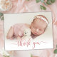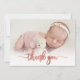 Modern Rose Gold Script Baby Photo Thank You Card