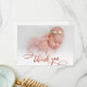 Modern Rose Gold Script New Baby Photo Thank You Card