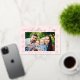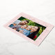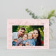 Modern Valentine's day card featuring "Happy Valentine's Day" in a trendy rose gold foil script with hand-drawn hearts along the sides of the card on a blush pink background. Your horizontal photo is displayed near the middle of the design. Personalize the Valentine's Day photo card by adding your name and the year in rose gold foil lettering. The foil Valentine's day card reverses to display a blush pink and white heart pattern.