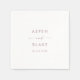 These modern rose gold script wedding paper napkins are perfect for a minimalist wedding reception. The simple blush pink rose gold colour design features unique industrial lettering typography with modern boho style. Customisable in any colour. Keep the design minimal and elegant, as is, or personalise it by adding your own graphics and artwork. Personalise the napkins with the names of the bride and groom, and the wedding date. These napkins can be used for the wedding reception, rehearsal dinner, engagement party and more!