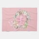 Pretty pink initial monogram kitchen towel, featuring a beautiful white script name with a complimenting pink initial that is framed by a delicate watercolor floral rose garland on a peach pink background. Personalise to create a special keepsake gift to treasure! Designed by Thisisnotme©