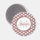 Give your style a modern edge with this graphic rosy brown and white fish scale scallop pattern round magnet that you can personalise by adding your name and monogram initial to. This trendy geometric shell pattern design is bold, yet stylish.