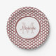 Modern Rosy Brown White Scallops Monogram and Name Paper Plate