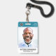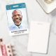 A modern and simple badge that does not distract from the important details. Easy to read from afar. Add a custom logo and company details. Add the employee's name, photo, and professional title. The bar of colour can be modified to match the company's official colours. At the back, add more information such as return address and the employee's ID number. Perfect for round shaped logos.