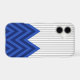Modern design combining trendy royal blue chevron pattern with forever stylish gray and white stripes pattern.