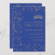 Modern Royal Blue Gold Floral Tiara QR Quinceañera Invitation