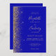 Modern Royal Blue Gold Glitter QR Code Wedding Invitation
