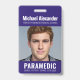 A modern design, featuring block lettering add a bold yet professional touch to this paramedic ID badge. Personalise with photo, name, job title, license, and organisational name, motto, logo, and more on reverse. Fonts and colours can be modified as desired.
