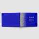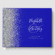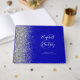 This elegant wedding guest book features a left-hand border of faux silver glitter on a royal blue background. Easily customise the white text with the names of the bride and groom in whimsical handwriting calligraphy over a large ampersand. Add additional text of your choice to the front and spine.