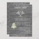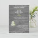 This fun design, called Modern Rustic Barn Wood Anniversary, has a washed out grey barn wood pattern background. There is a white scroll calligraphy style design at the top and bottom and a pretty filigree style heart with an arrow separating the bride and grooms' names. A bit lower to the left side there is a tree graphic in white and celery green. The text is in white and celery or lime green as well to really pop off the invitation. Perfect for your rustic country western or outdoor wedding anniversary or event.
