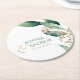 Modern rustic botanical greenery wedding monogram round paper coaster