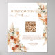 Create a stylish and memorable way for your guests to contribute to your honeymoon with this Modern Rustic Cash Honeymoon Fund QR Code Wedding PosterSign. Featuring a modern minimalist design with terracotta flowers and elegant calligraphy, this wishing well sign is perfect for couples looking for a seamless and classy way to collect funds digitally. Designed for the modern bride, this editable sign allows you to add your own QR code, making it easy for guests to contribute to your honeymoon fund using digital payment options. Ideal for a boho, rustic, or elegant wedding, this bright and bold poster sign will enhance your wedding decor while serving a practical purpose. Whether you're planning a bohemian-themed celebration or a modern minimalist wedding, this sign combines elegance with function. Personalise it with your unique details for a beautiful and useful addition to your big day. Perfect for couples, it fits well with various wedding themes from floral to bohemian styles.