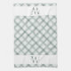 Modern, rustic farmhouse chic monogrammed kitchen towels feature a faded green gingham plaid pattern, with a white band bearing your custom family name and monogram.