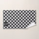 Modern rustic white and black checked buffalo plaid towel with a customisable family monogram and name, the towel would work great for a rustic farmhouse style home, cabin, or for the holiday season decor and/or a personalised gift.