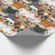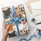 Modern Rustic Floral Pug Dogs Pattern Wrapping Paper