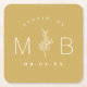 Modern Rustic Floral Stem Wedding Monogram Square Paper Coaster