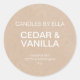 Personalised Modern Rustic Kraft Background Sticker. Create a custom modern candle label with this template featuring branding, scent type and product details all on a faux kraft paper image background.