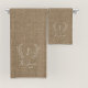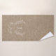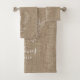 Custom monogrammed laurels elegant chic rustic country dark beige burlap jute linen pattern template bath towels. +++++++ A modern keepsake bathroom decoration or gift for weddings, anniversaries, housewarmings, Thanksgiving, Christmas, or any other occasion.