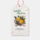 Explore the charm of a natural modern, rustic Christmas gift tag, ideal for your gifts, featuring a speckled dot background adorned with pine branches, slices of orange, and pinecones nestled with berries and a festive ribbon. Script typography can be personalised with your preference.