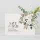 Modern barn farmhouse rustic botanical bohemian natural pampas grass and eucalyptus botanical wedding save the date invitation. Classy sage green , terracotta, black and natural colorway. Space for website and QR code on the back.