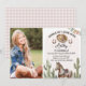 Photo saddle up and ride over horse themed birthday invitation featuring some cactus, a horse, cowgirl hat and horse shoes on a faint pink arch. This horse themed birthday invitation also features a bunting flag and is great for a horse themed birthday party.
