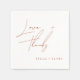 Modern elegant rustic terracotta script "love + thanks" with bride and grooms name paper napkins for weddings or any special occasions.