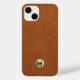 Simple Modern Brushed Metallic Gold Monogram Emblem Sable Brown Leather Look Texture Phone Case. Elegant brushed metallic gold monogram emblem with monogrammed initial in modern typography on sable brown faux leather textured background.