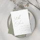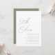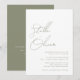Modern elegant minimal and simple sage green calligraphy script names in modern typography wedding invitation with QR code in the back of the invite.