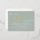 Modern Sage & Gold Script Surprise Birthday Party Foil Postcard Invitations.