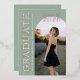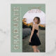 This sage green photo graduation announcement pairs classic serif typography with a clean, modern layout for a refined, editorial look. Soft ivory lettering and rose gold foil accents highlight the graduate’s name, class year, and school, while the design keeps the focus on the main photo. Fully customizable, this template allows you to personalize all text details and upload your own image on the front. The coordinating back features a matching sage background with space for a four-photo collage, ideal for sharing additional senior portraits. A timeless yet contemporary graduation announcement designed for those who love neutral tones, elevated design, and understated luxury. © Kimbellished, LLC