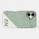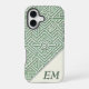 Modern sage green and cream geometric maze patterned iPhone case with monogram. Personalise your iPhone case with this chic unique design. Ideal as a personalised gift.