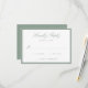 This wedding RSVP card features elegant sage green calligraphy script at the top, paired with classic serif lettering and space for your desired wedding response date. A soft sage green border frames the design, bringing a calm, refined feel to the structured layout. The understated design offers a polished way for guests to reply, making this RSVP card well suited for garden-inspired, modern, and classic wedding celebrations. Personalize the wording to create a response card that feels natural, balanced, and thoughtfully designed.