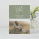 Announce your special day with these minimalist modern cards with a handwritten calligraphy script Save The Date against a sage green background. Easily customise your personal information and photo on the front and back to make it your own.
