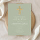 Personalised Modern Sage Green Cross Religious First Communion Invitation