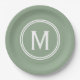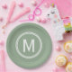 Modern Sage Green Custom Round Framed Monogram Paper Plate
