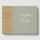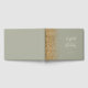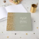 This elegant wedding guest book features a left-hand border of faux gold glitter on a sage green background. Easily customise the ivory text with the names of the couple in whimsical handwriting calligraphy over a large ampersand. Add additional text of your choice to the front and spine.