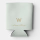 A modern, elegant monogram design with gold handwritten minimalist script typography and sans serif block typography on an elegant pale pastel Sage Green background. The monogram and name can be easily personalised.